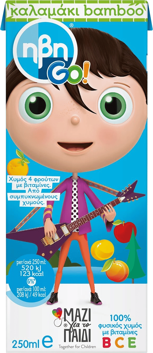 ΗΒΗ Go Παιδικός Χυμός Φράουλα, Μήλο & Σταφύλι 250ml.